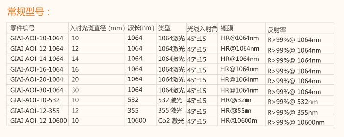 4、具有高反射涂層,適用于 YAG 振鏡